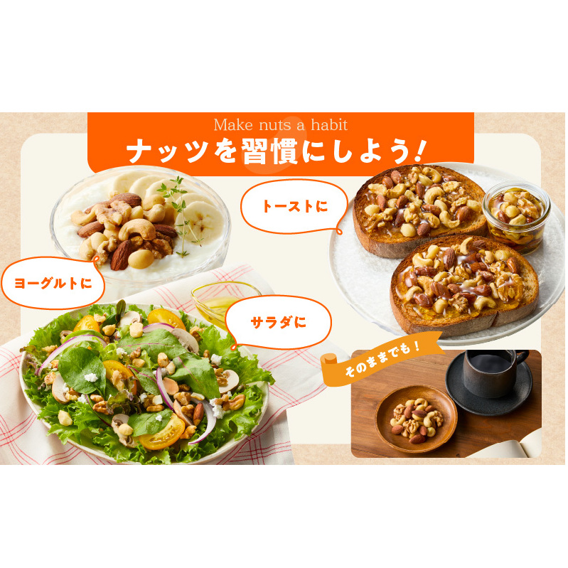・栄養豊富なアーモンド・カシューナッツ・くるみ・マカダミアナッツを厳選使用