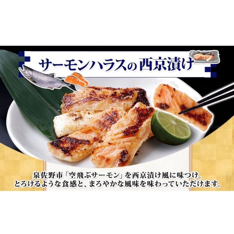 泉佐野市ふるさと納税で大人気の「空飛ぶサーモン」を、西京漬け風の味付けで上品に仕上げました。