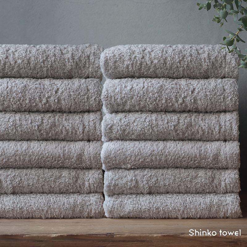 ふかふかの肌触りを重視するためにパイルを長くし、肌に触れるだけで吸水するようにしました。柔軟剤を使わなくても柔らかく、吸水性に優れた使い心地はまるで吸いつくような新しい感覚のタオルに仕上がっています。甘織りの製品で洗濯後の乾きも早いのが特長です。