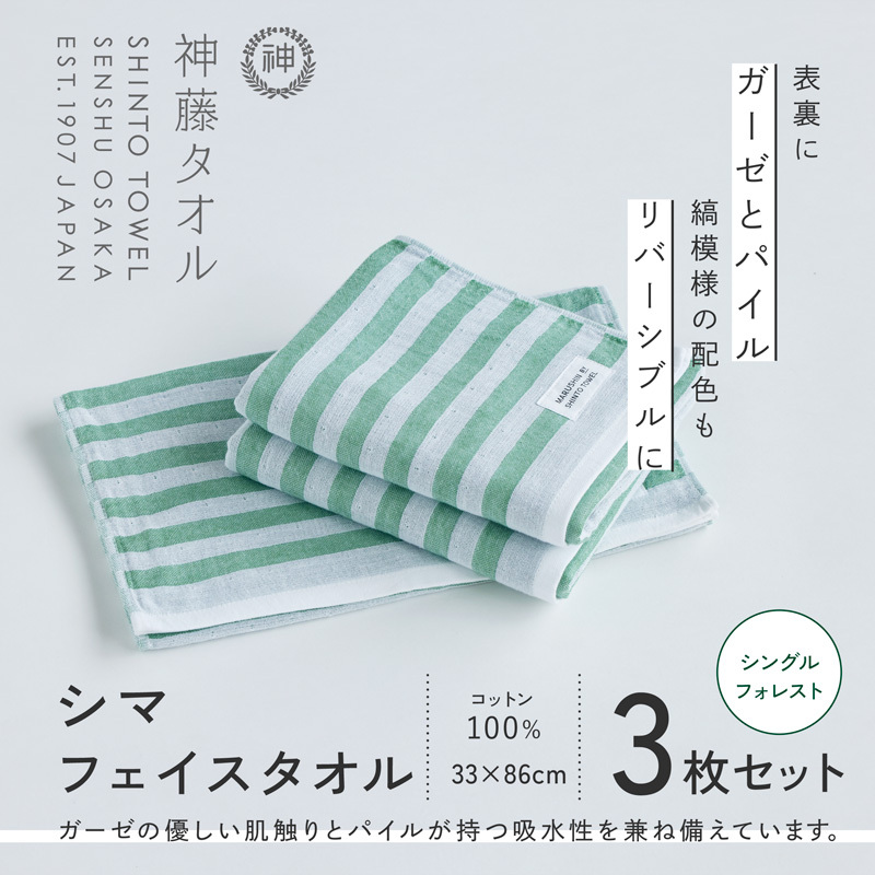 神藤タオル「シマ・フェイスタオル」(シングル/フォレスト)3枚セット 010B1791
