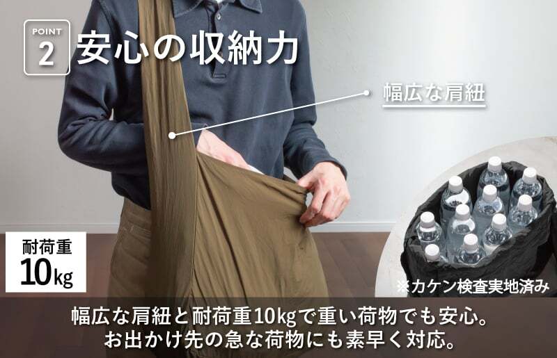 TAVARATの「ノマドスリング ショルダーバッグ TAV-051」は、折り畳み可能な収納力抜群のショルダーバッグです。ナイロン100%製で、耐荷重約10kgと丈夫。肩紐の長さは結ぶことで調整でき、幅広のデザインで重い荷物も快適に持ち運べます。シワが馴染みやすいマットな質感の生地を採用し、カラーバリエーションも豊富です。