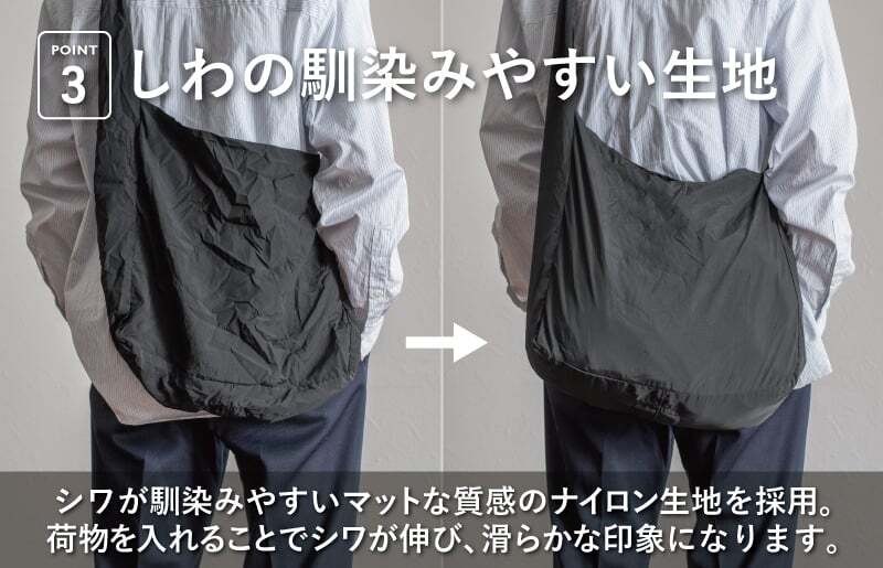 TAVARATの「ノマドスリング ショルダーバッグ TAV-051」は、折り畳み可能な収納力抜群のショルダーバッグです。ナイロン100%製で、耐荷重約10kgと丈夫。肩紐の長さは結ぶことで調整でき、幅広のデザインで重い荷物も快適に持ち運べます。シワが馴染みやすいマットな質感の生地を採用し、カラーバリエーションも豊富です。