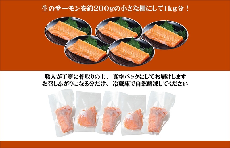 7. 生食可!アトランティックサーモン 合計1kg【小分け 柵切り 刺身 魚介 海鮮】 G3528