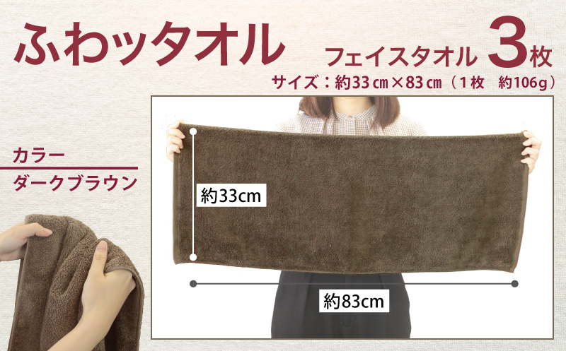 フェイスタオル3枚(ダークブラウン)