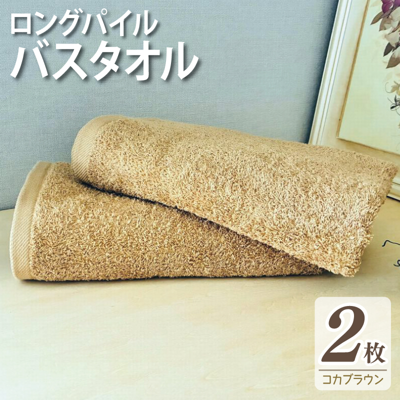 ロングパイルバスタオル2枚セット(コカブラウン)