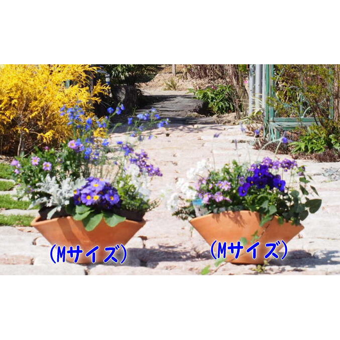 ■舟形テラコッタ鉢Mサイズ×2個、季節のお花(5~6点)