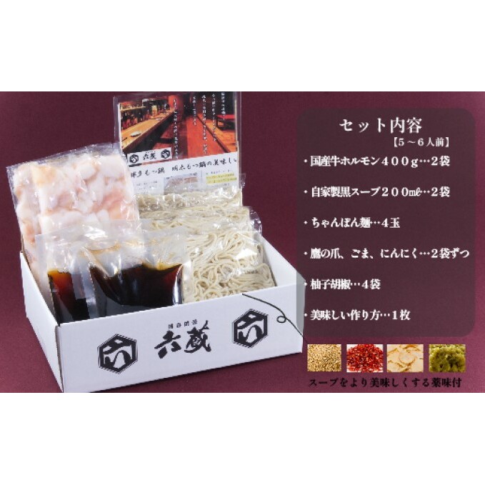 もつ鍋 六蔵 博多 黒もつ鍋 セット 5~6人前 国産 牛もつ 800g (醤油味) ※配送不可:離島 鍋セット モツ鍋 お肉 牛肉