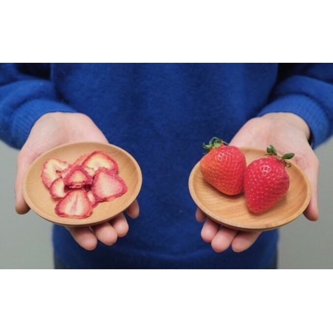 あまおうの特徴をなるべくそのままに独自の製法で、砂糖不使用で濃縮し、不思議食感に仕上げたあまおうドライです。フレッシュなあまおうとはまた違った感覚、そのままではもちろん、ヨーグルトや紅茶に入れて愉しまれるのもオススメです。