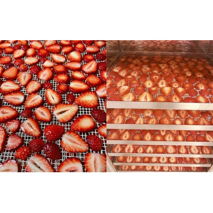 あまおうの特徴をなるべくそのままに独自の製法で、砂糖不使用で濃縮し、不思議食感に仕上げたあまおうドライです。フレッシュなあまおうとはまた違った感覚、そのままではもちろん、ヨーグルトや紅茶に入れて愉しまれるのもオススメです。