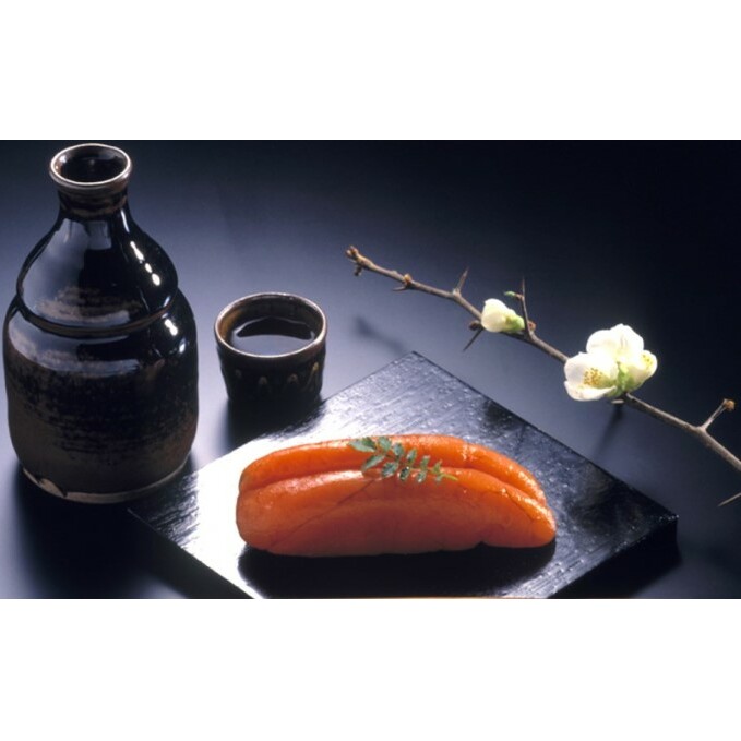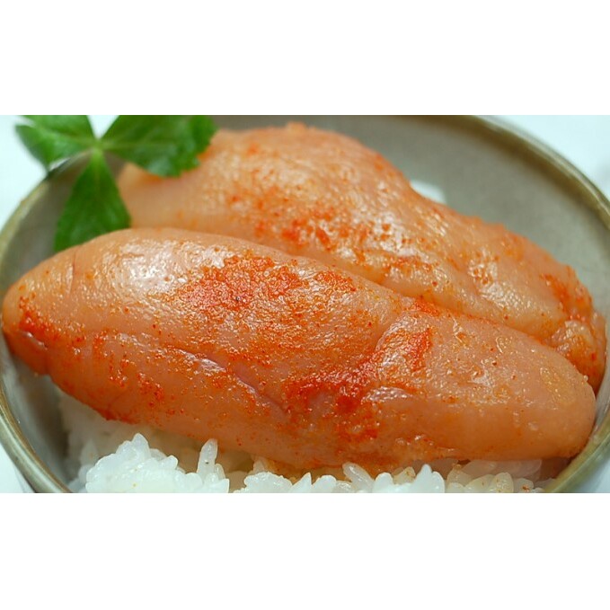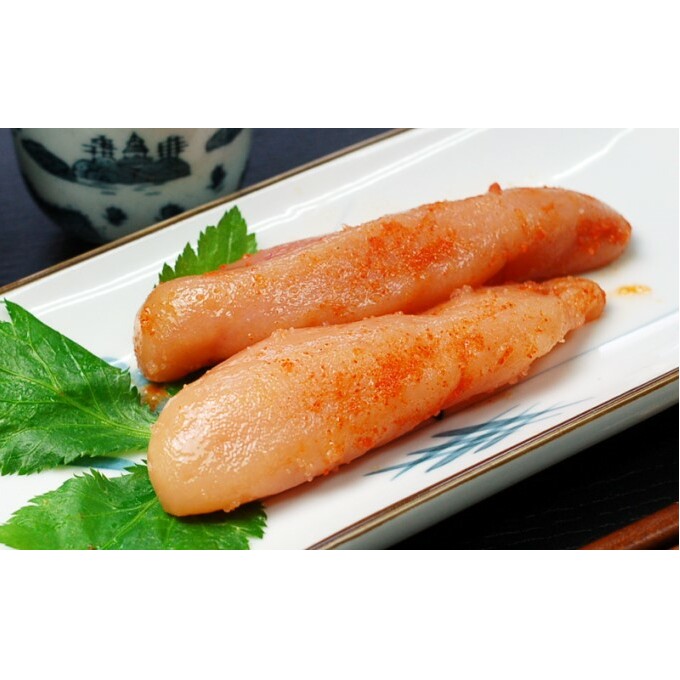 福岡県の魚市場 プロの仲買人が選ぶ宮近の辛子明太子。ご贈答品としてもおすすめな無着色の1本物です。