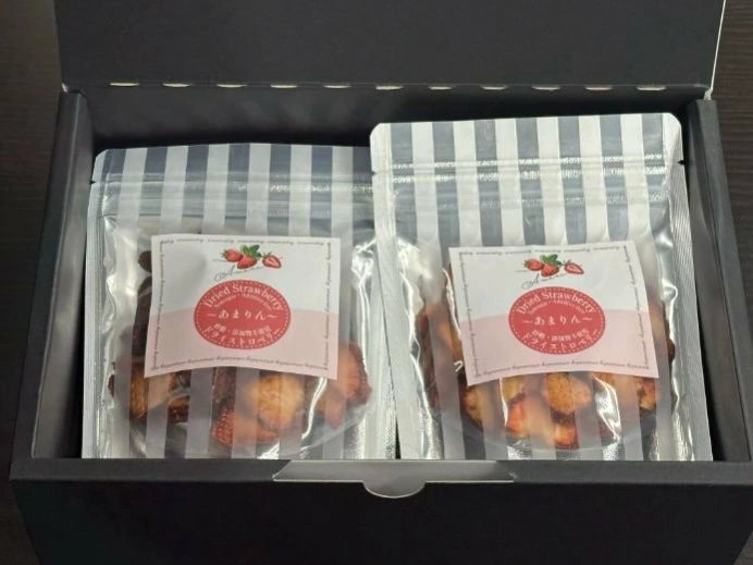 ◆◆埼玉県産の希少ブランド苺”あまりん”を無添加のドライフルーツ!◆◆ 全国いちご選手権で3年連続日本一に輝いた、埼玉県産の希少ブランド苺”あまりん”を使用した無添加のドライフルーツです。 いちご選手権で2年連続受賞した優良ファーム”UFIRM!”の厳選あまりんを使用。 一般的にいちごの糖度は12度程度といわれていますが、あまりんは18度以上甘みを誇るあまりんならではのプレミアムドライフルーツです。 原料は苺のみで完全無添加のドライフルーツ。水分が豊富で潰れやすい品種であるあまりんを手作業で丁寧にスライスカットし、時間をかけてヒートドライを行っています。 噛めば噛むほど凝縮された甘みと酸味が蘇ってきて、後を引く美味しさです。 完全無添加ですので、お子様やご年配の方まで皆様に安心してお召し上がりいただけます! おやつ感覚でそのまま食べても良し、ヨーグルトやアイスに添えても美味しく食べられます。カクテルなどのお酒に入れても絶妙なアクセントになりますので、是非自分好みであまりんをお楽しみください! 【提供:株式会社Ensembles】