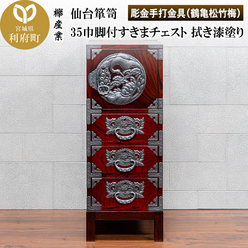 ■地場産品に該当する理由:宮城県の伝統工芸品である仙台箪笥を町内にて企画・デザイン、組み立て、金具装着、磨き、最終仕上げまでの全ての工程を行っている。
