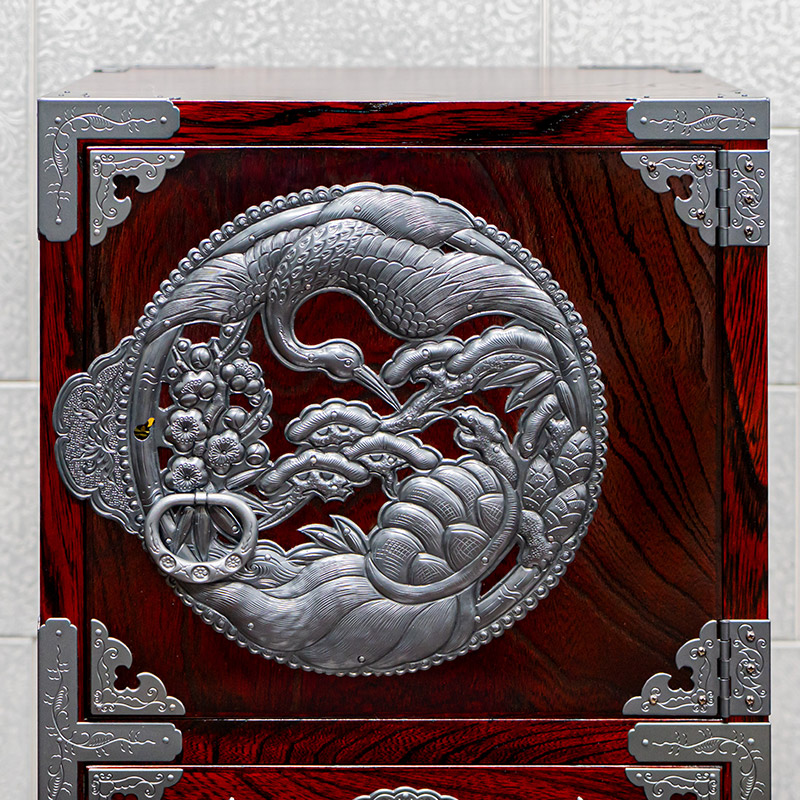 金具:[扉]彫金手打金具 鶴亀松竹梅 [その他]オリジナル鍛造金具 黒銀