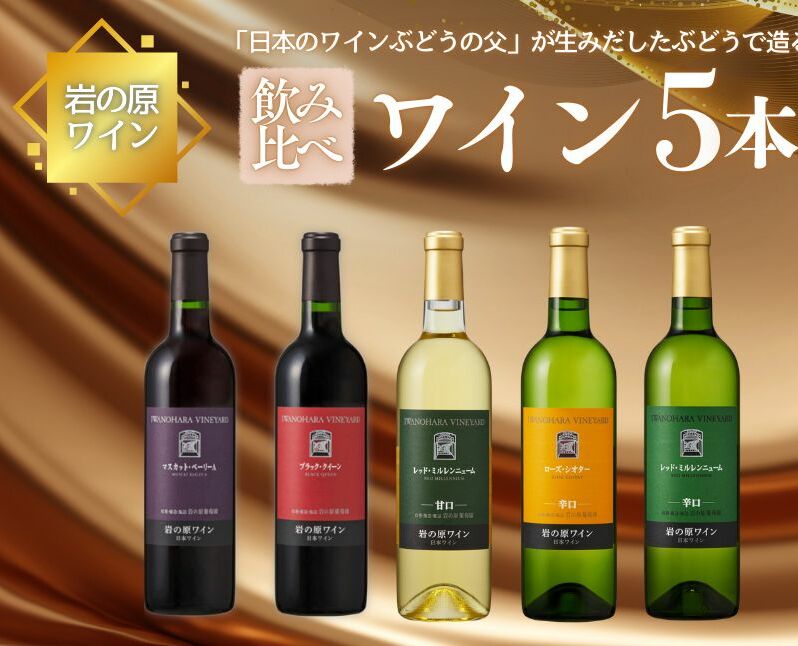 ワイン 岩の原ワイン 善兵衛品種 飲み比べ 5本 セット お酒 おすすめ 岩の原 ふるさと納税 酒 新潟 上越