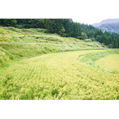 多くの豊かな自然が現在も残っており、そこでは棚田での米作りが現在も行われております。棚田での米作りのため効率はとても悪く米の収穫量もとても少ないですが、山から直接流れてくる純粋な雪解け水(天然水)と厳しい気候が旨みの強いお米を生み出しています。