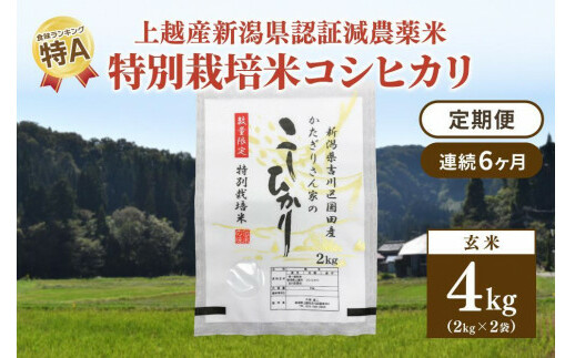 定期便 6ヶ月 新潟県認証減農薬米 特別栽培米 コシヒカリ 玄米 4kg (2kg×2袋) 米 お米 こめ こしひかり