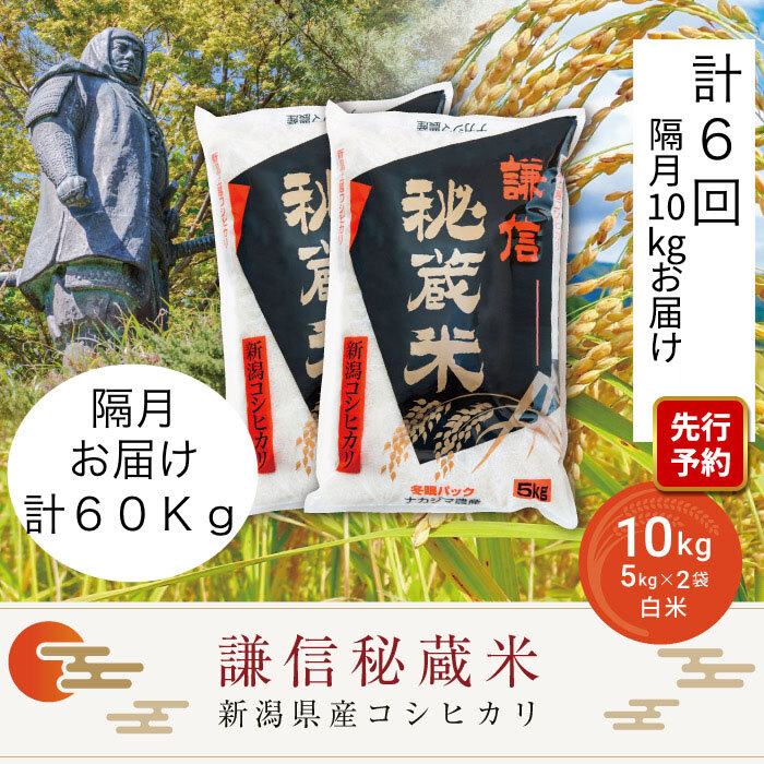 令和7年産 定期便隔月発送(10kg×6回分)10kg 米 新潟県産 コシヒカリ 精白米 謙信秘蔵米 お米 こめ コメ おこめ おすすめ こしひかり 新潟 にいがた 新潟米 上越 上越産 上越米 ふるさと納税 定期便 人気