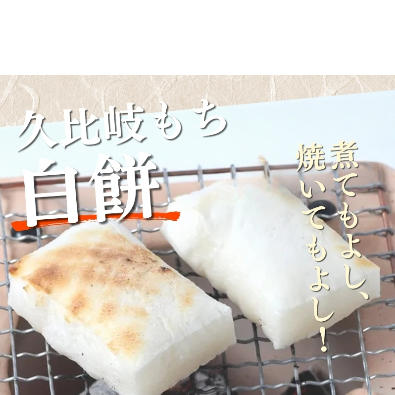 その餅米を丁寧についた出来た久比岐もちはコシと粘りがあってよく伸びるお餅です。