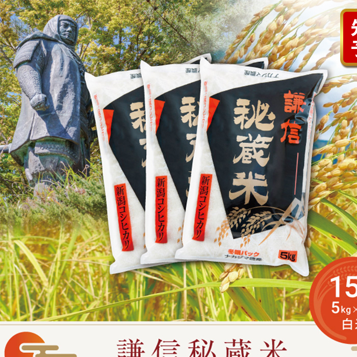 【先行予約|10月上旬より順次出荷】15kg 米 新潟県産 コシヒカリ 精白米 謙信秘蔵米 お米 こめ おすすめ 新潟 新潟米 上越 上越産 上越米 ふるさと納税 上杉謙信 人気