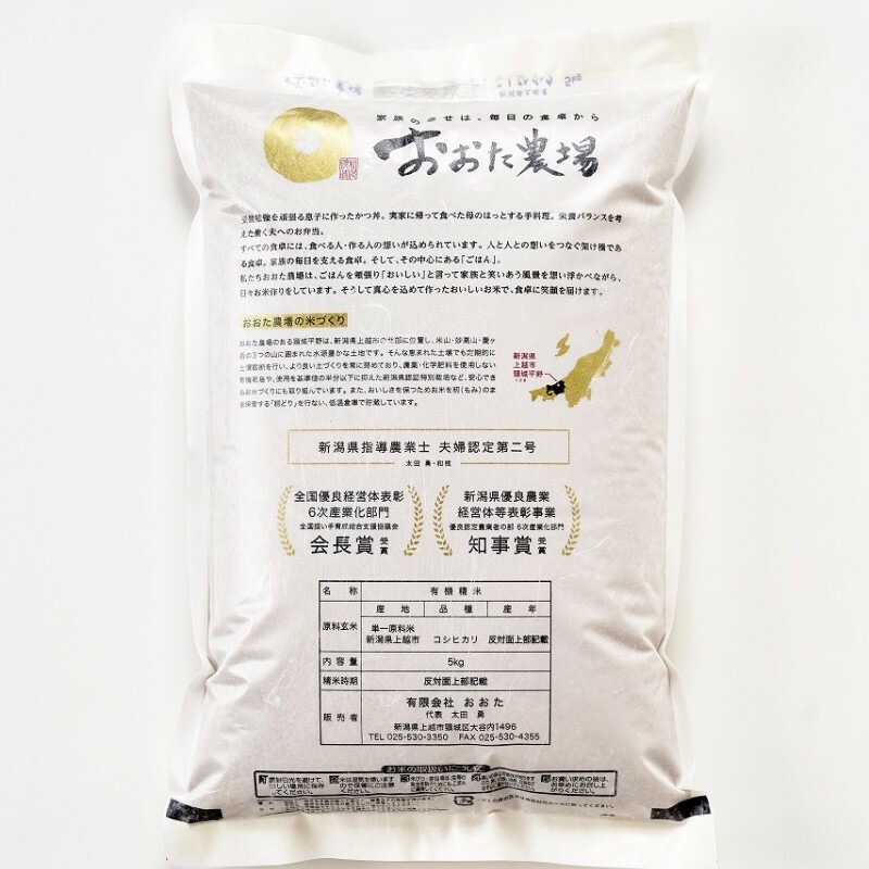 米 【令和6年産】 新潟県上越産 有機栽培米 コシヒカリ 【白米】 5kg×1袋 お米 こめ 白米 食品 人気 おすすめ にいがた 上越 上越産