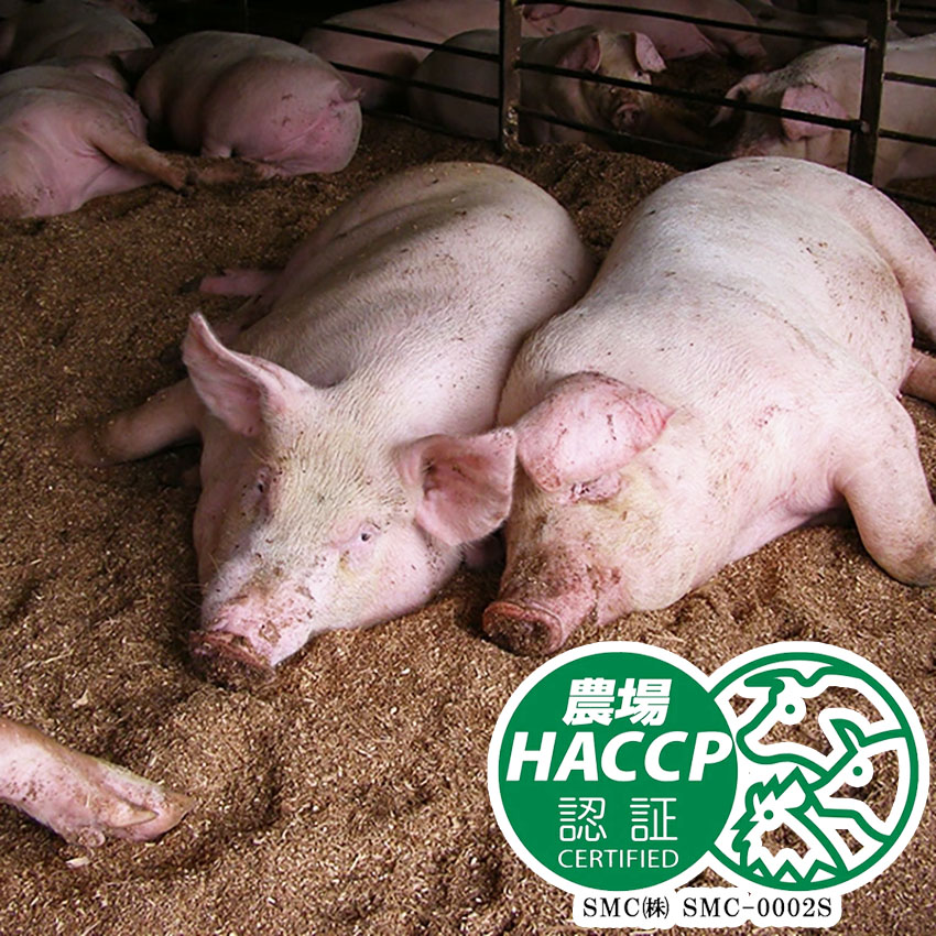 「館ヶ森高原豚」は私たちが30年前にでアメリカで出会った「バブコック・スワイン種」の種豚をルーツに持ち、日本向けに長年にわたり育種改良を進め、日本独自の嗜好に合わせてきた品種です。世界の数多くの品種が生産性・合理性を最優先にする中、精肉の食味や品質を追求している世界でも稀な品種です。私たちが目指す安心・安全でおいしい豚肉づくりの価値に合致する非常に希少な品種として、ご提供しています。赤肉は柔らかさと旨味を、脂身は旨味と甘みを感じられ、肉特有の臭みがないとの評判をいただいています。