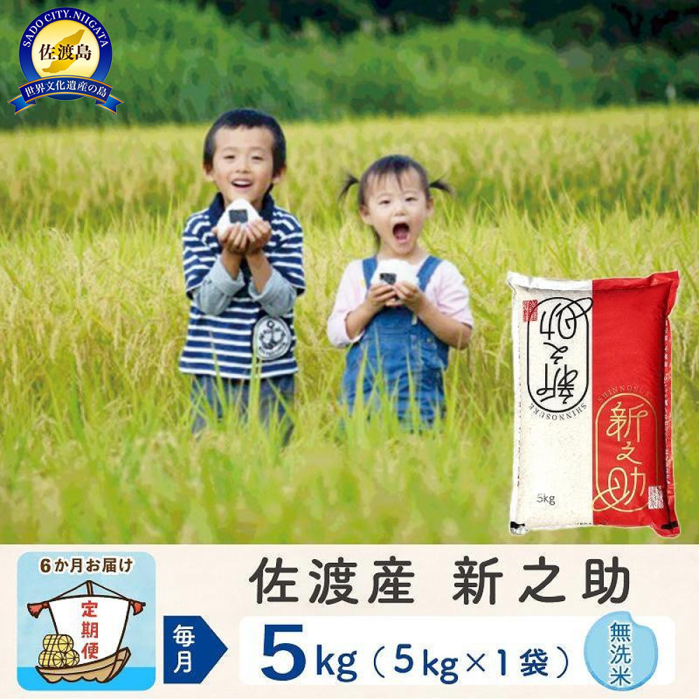 【新米予約 6か月定期便】佐渡島産 新之助 無洗米5Kg 令和7年