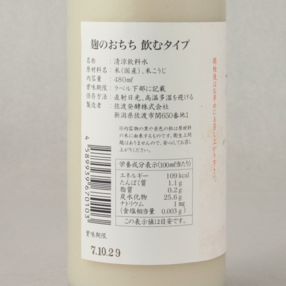 佐渡のどぶろく屋さんが造る米・米麹を原材料にした甘酸っぱい甘酒「麹のおちち」は