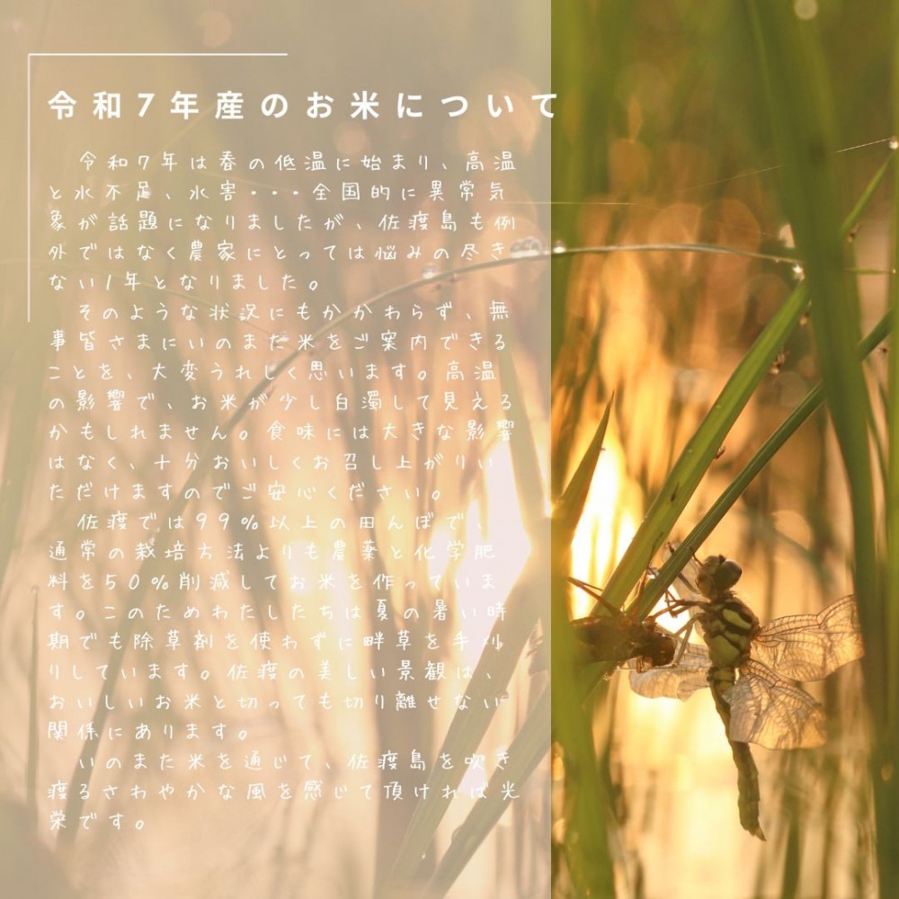 米の種類:特別栽培米佐渡産コシヒカリ