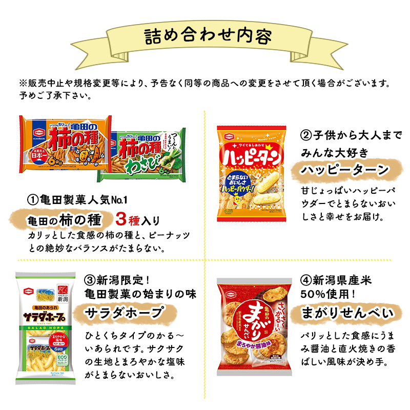 米菓国内売上No.1の亀田製菓が自信をもってお薦めする厳選詰め合わせです!
