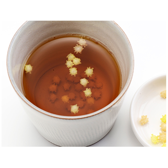 明治33年から作られている、金平糖のようで金平糖ではない、あられを使った新潟の伝統菓子です。そのまま食べるのもおいしいですが、飲み物に浮かべると砂糖が溶けてあられがプカプカ浮かんでくるのが特徴です。