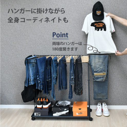 スラックスハンガーにはなかったデザイン性を重視!スラックスハンガーを10年以上製造している国産メーカー製造で耐荷重もアップ!ウォークインクローゼットで活躍。ジーンズの保管に最適なジーンズハンガーです。
