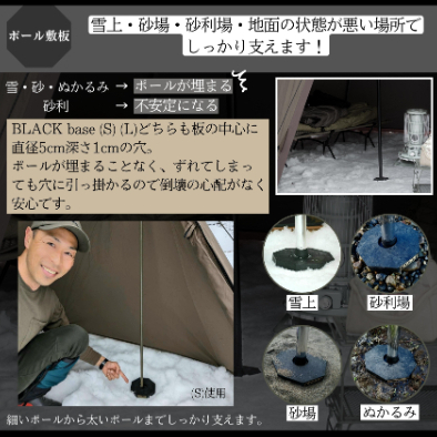 雪中用ワンポールテントのポール敷板です。雪中キャンプでの強い味方。