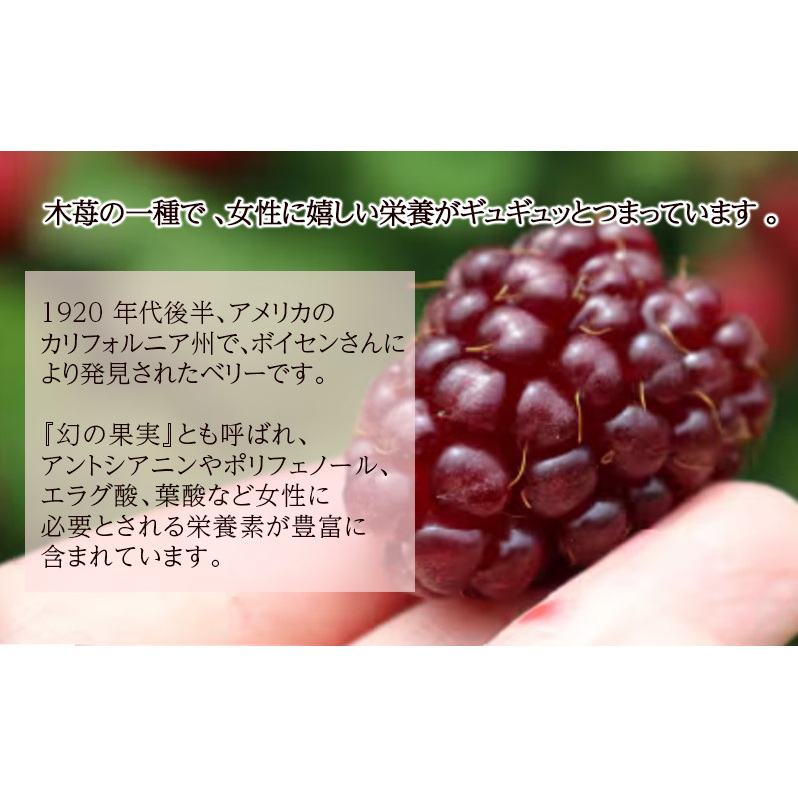 強力な抗酸化作用を持つアントシアニン・エラグ酸を豊富に含むボイセンベリーの寒天ゼリーです。太陽光をたっぷり浴びて育ったベリーは栄養満点!ぷるぷるちゅるんとした食感で、毎日手軽に摂取できます。