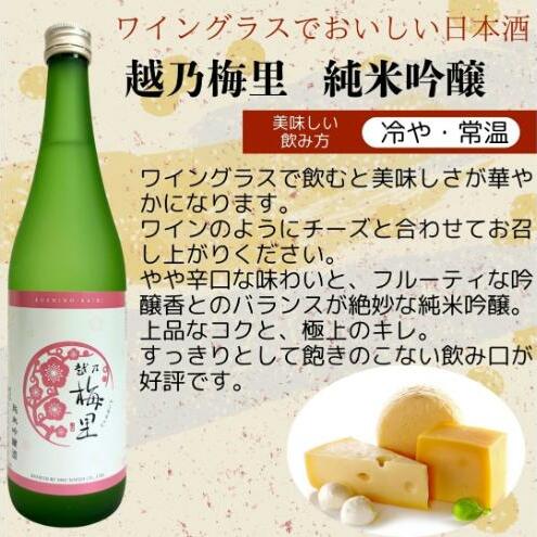 越の梅里 純米吟醸酒 やや辛口な味わいと、フルーティな吟醸香とのバランスが絶妙な純米吟醸。上品なコクと、極上のキレ。すっきりとして飽きのこない飲み口。