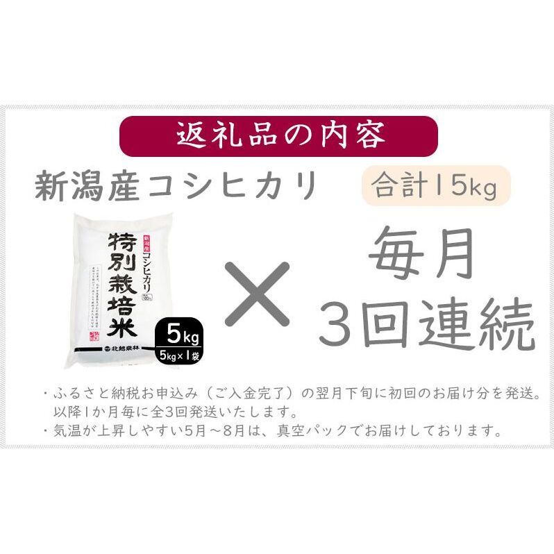 特別栽培米新潟産コシヒカリ5kg 毎月3回連続でお届けします。 米 お米 こめ コメ ごはん 新潟 白米 コシヒカリ ブランド米 銘柄米 お取り寄せ 産地直送