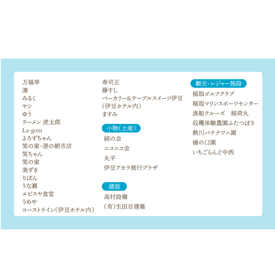 100以上の施設や事業所で使用できる「東伊豆町ふるさと納税感謝券」。