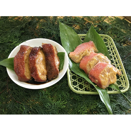 金目鯛の煮付けの切り身と味噌漬けの切り身をセットにしました。