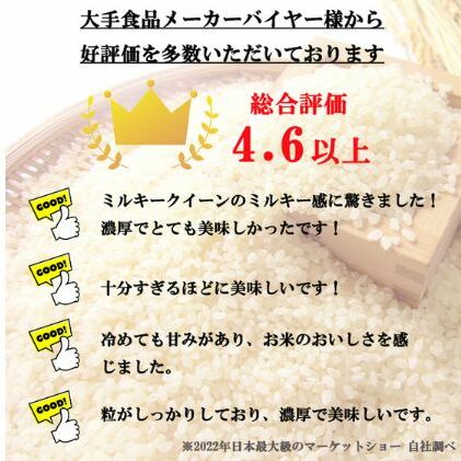 また同大会にてミルキークイーンの中で食味・味度値ともに「最高得点」を獲得した生産者が栽培しています。
