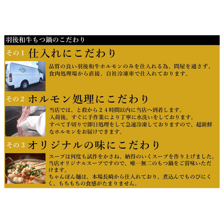 と殺後、24時間以内に処理をしている羽後和牛の超新鮮なホルモンのみを使用したもつ鍋セットです。