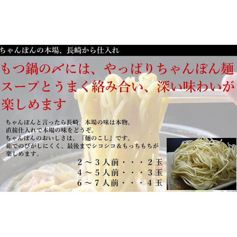 もつ鍋スープ(3倍希釈)180g、羽後和牛ミックスホルモン300g、ちゃんぽん麺2玉