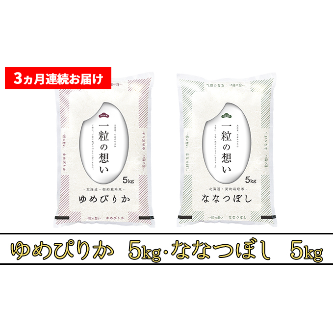R7年産 ≪3ヶ月定期便≫北海道上富良野町産 【ゆめぴりか&ななつぼし】食べ比べセット計10kg お米 白米 精米 ライス ご飯 ブランド米 銘柄米 お弁当 おにぎり 北海道産 食卓 産 地直送 複数回 お届け
