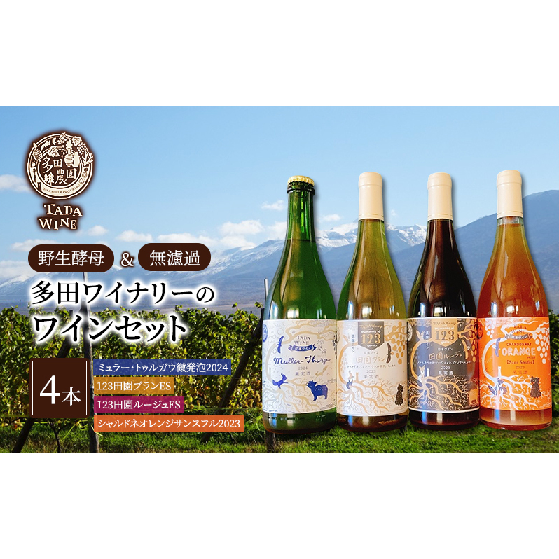 【野生酵母】赤白泡オレンジ ワイン4本 多田ワイナリー 北海道 上富良野町 ワイン 赤ワイン 白ワイン 微発砲ワイン セット お酒 アルコール