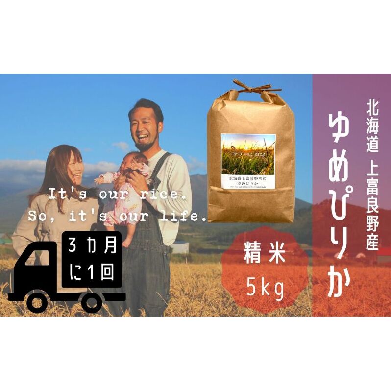 ◆3ヶ月に1回お届け/計3回定期便◆ゆめぴりか 精米 5kg /北海道 上富良野産 ~It's Our Rice~ お米 米 コメ 白米 ライス ご飯 ブランド米 銘柄米 お弁当 おにぎり 北海道産 食卓 産地直送 主食 炭水化物