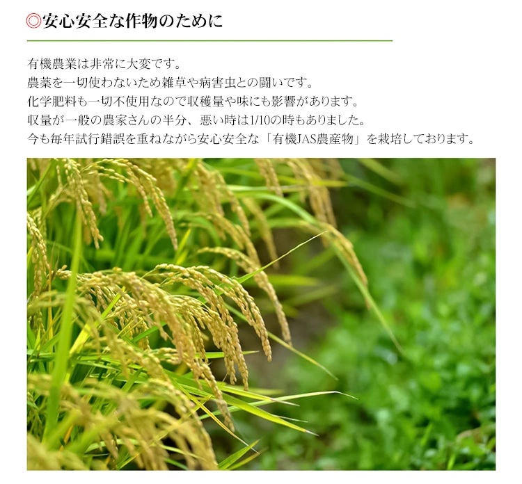 ◎希少なJAS有機栽培米(農薬・化学肥料不使用)です。