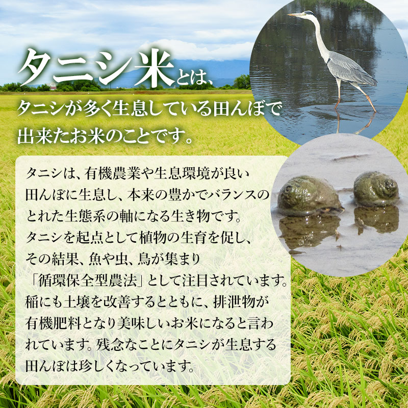 タニシ米とは、タニシが多く生息している田んぼで出来たお米のことです。