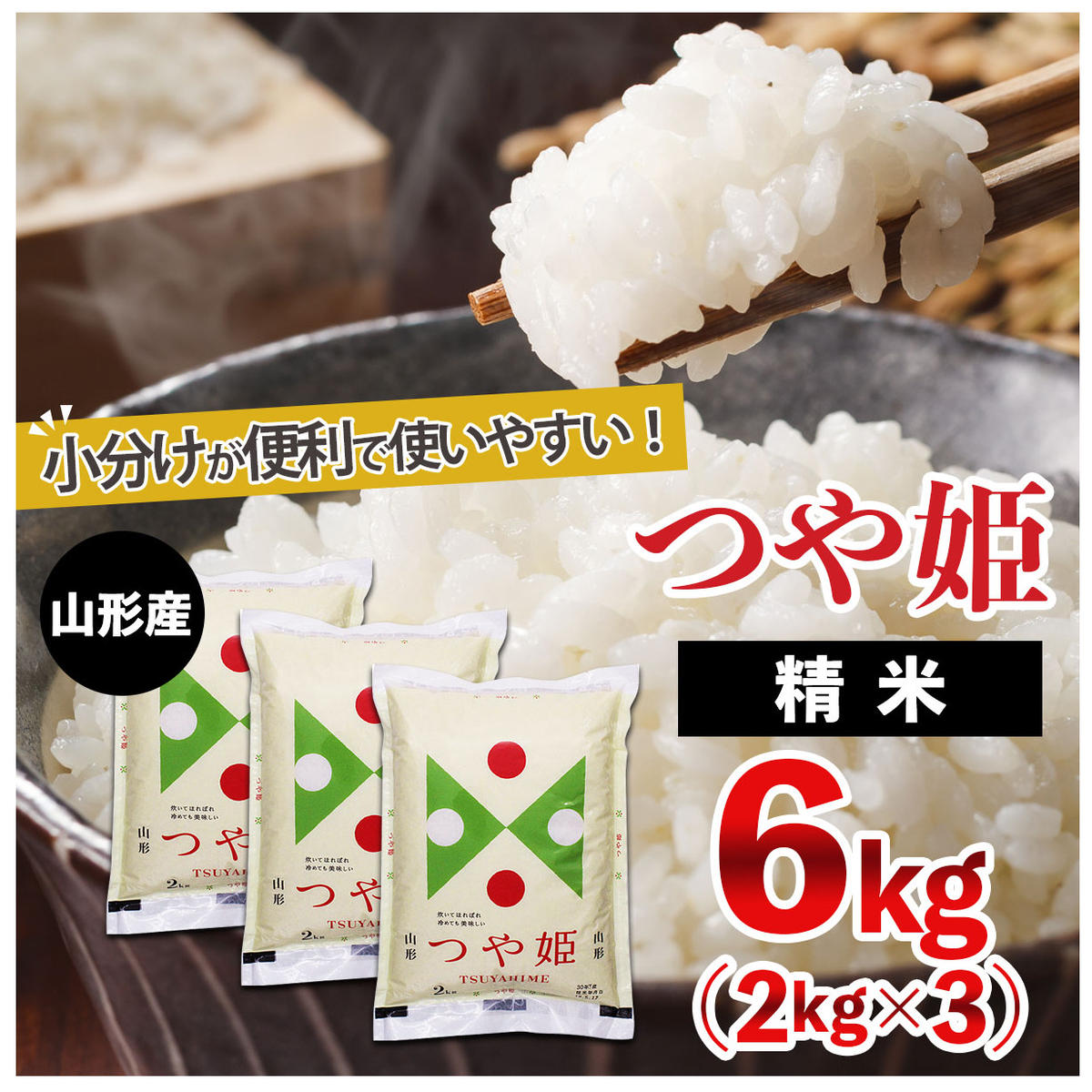 【令和7年産】山形産 つや姫 (精米) 6kg (2kg×3) FZ25-894