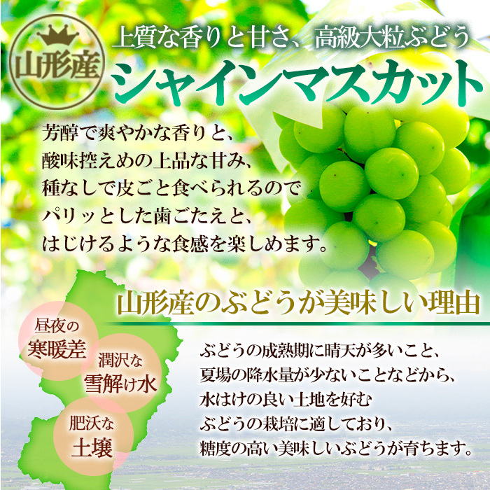 皮ごと食べる種無しぶどうで大人気のシャインマスカットを厳選してお届けいたします。