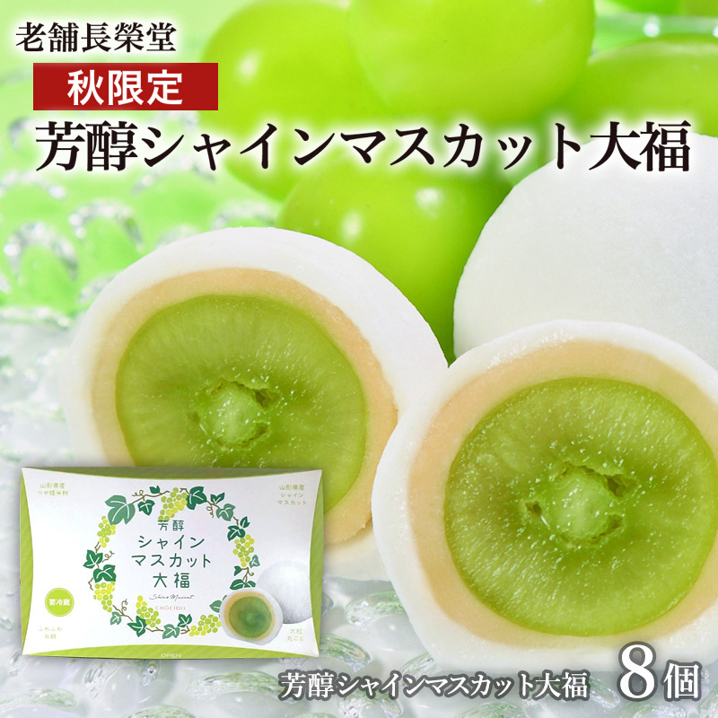 老舗長榮堂「【秋限定】芳醇シャインマスカット大福」8個 FZ21-949 菓子 スイーツ 詰合せ 詰め合わせ 土産 ギフト プレゼント 贈り物 おすすめ 美味しい