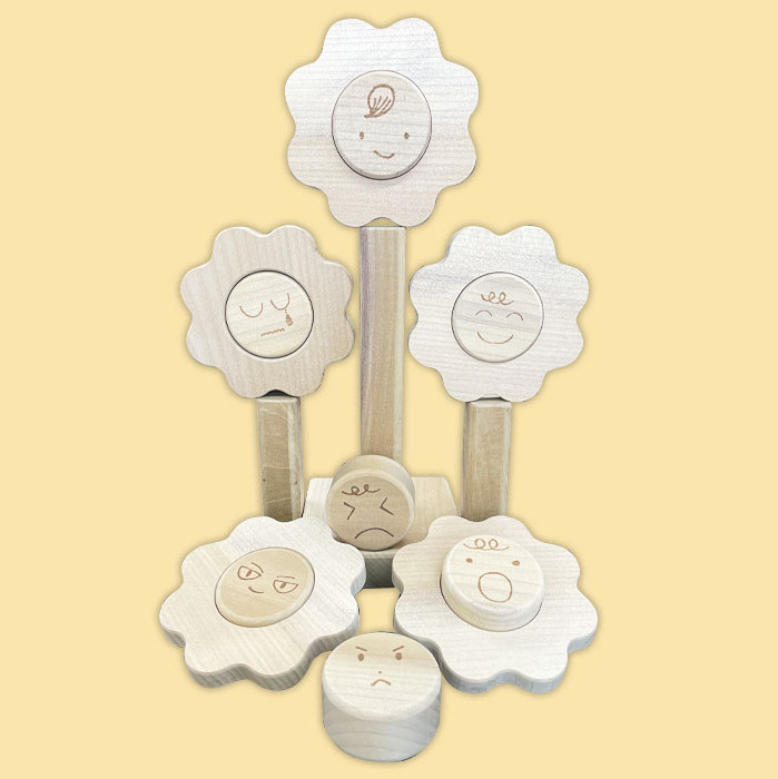 朴の木がもつ優しい風合いに、丸い積木の可愛らしい表情が絶妙にマッチした商品です。