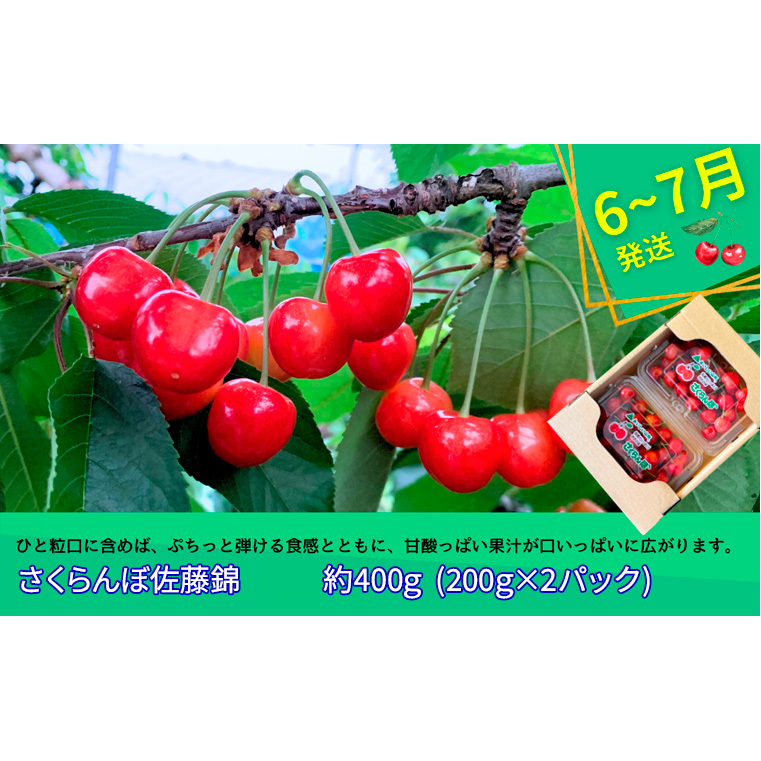 【6月】:さくらんぼ佐藤錦 Lサイズ 約400g (200g×2パック) (6月10日~6月30日) 冷蔵